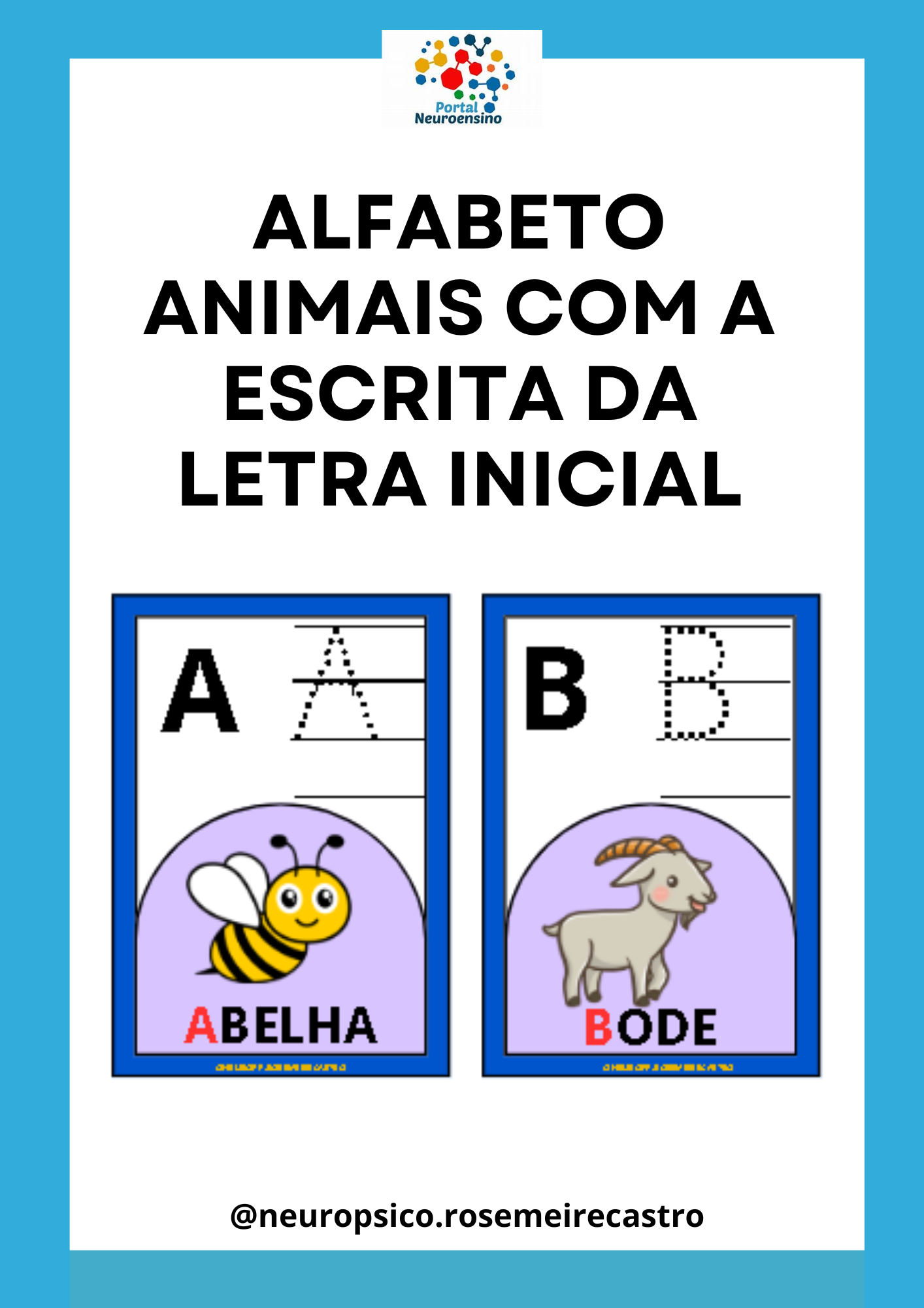 vOCÊ VAI RECEBER EM PDF O ALFABETO ANIMAIS COM A ESCRITA DA LETRA INICIAL, IMPRIMIR E PLASTIFICAR PARA TREINAR A ESCRITA DA LETRA INICIAL DO ALFABETO.