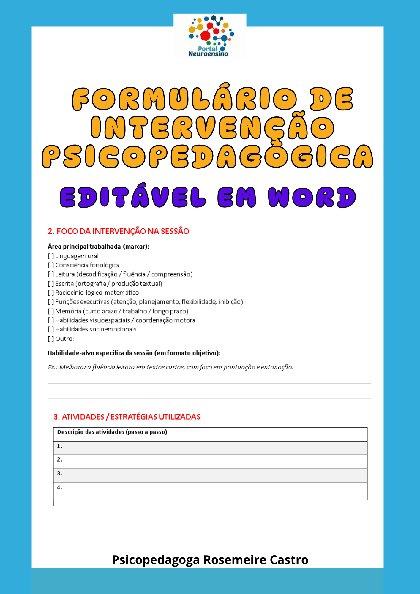 Formulário de intervenção psicopedagógica/neuropsicopedagógica