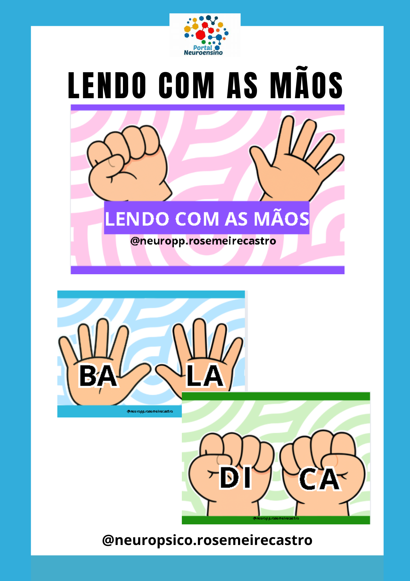 Quer uma atividade de leitura lúdica que a criança inicia a leitura, Lendo com as mãos irá ajudar muito, basta imprimir em papel grosso ou plastificar.