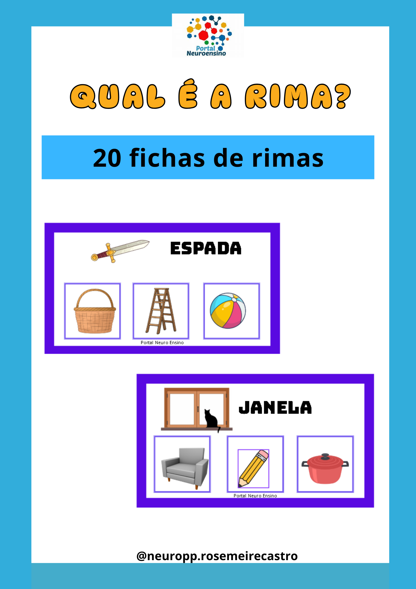 Você receberá 20 cartões para trabalhar qual é a rima com a criança, imprimir e plastificar.