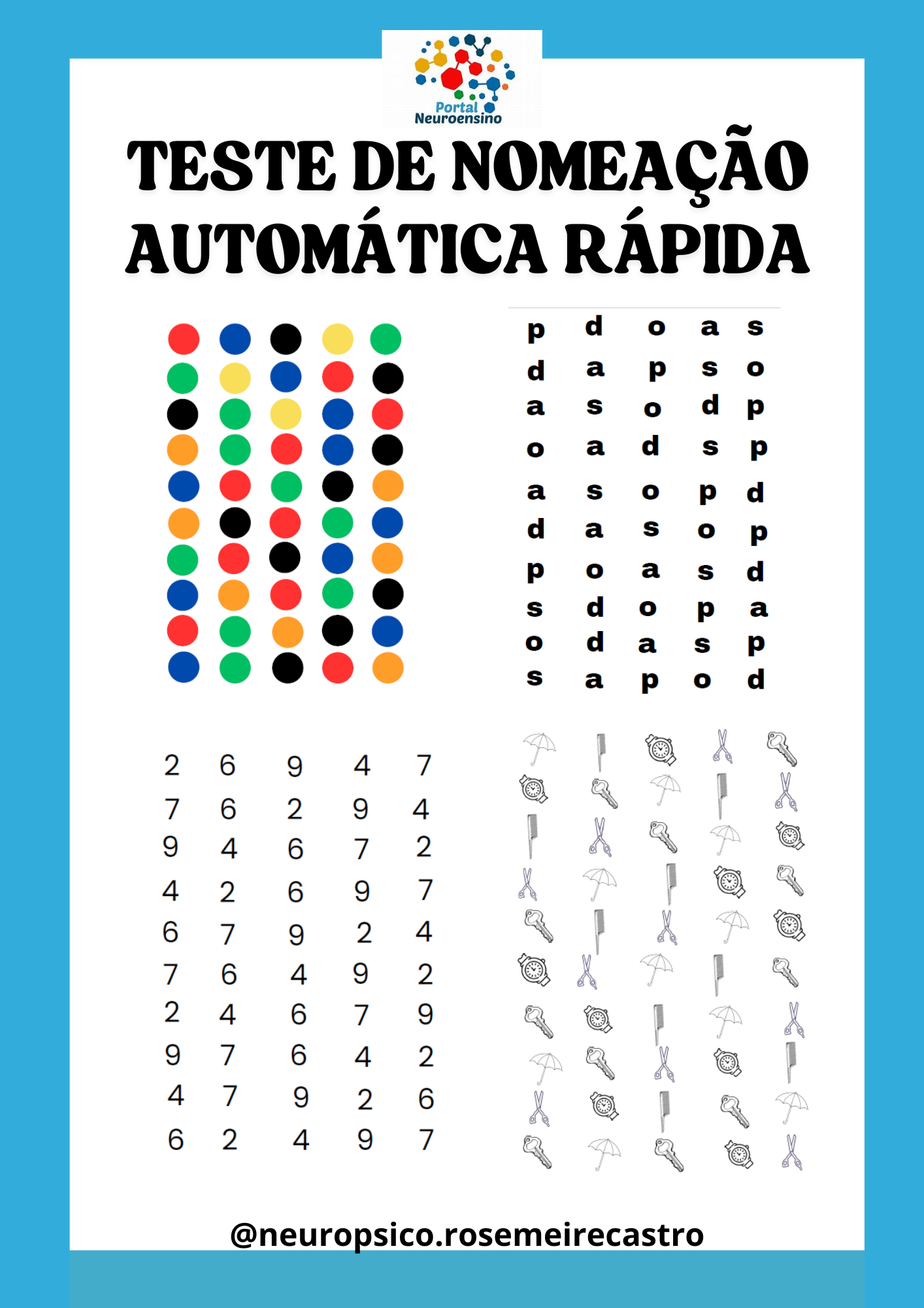 Você receberá um pdf com o Teste de nomeação automática rápida.