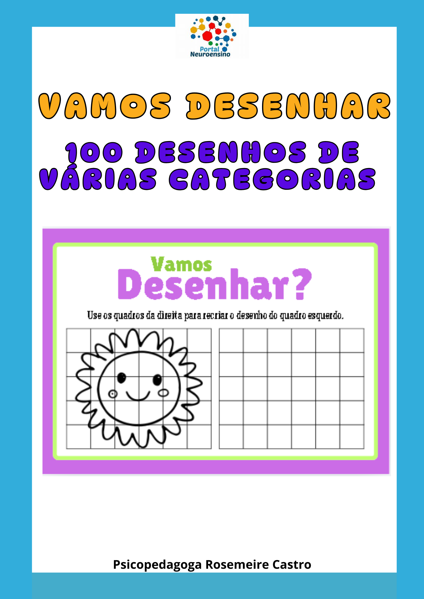 Vamos desenhar é uma apostila com mais de 100 desenhos para criança praticar com um desenho modelo, o desenho ajuda a criança e idoso desenvolver a criatividade, a coordenação motora ao elaborar os traçados.